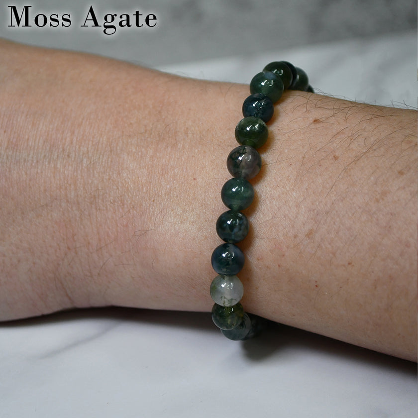 Experience the serene allure of moss agate. Adorn your wrist with these mesmerizing stones that evoke the tranquil beauty of a lush forest. Each moss agate piece showcases intricate green patterns resembling delicate moss and trees. With its earthy hues and natural charm, this bracelet embodies a peaceful connection to nature, offering a touch of grounding and harmonious beauty to enhance your style with understated elegance.