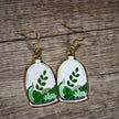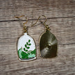 A Bubble of Botanicals Earrings depict a terrarium enclosed in a cloche, offering a unique and charming accessory for plant lovers and admirers of nature.