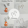 - Stainless Steel Clip-Ons (+$1.00). For those without pierced ears who still want to be able wear something fun we offer a leverback with screw style finding that we can attach to the earrings.