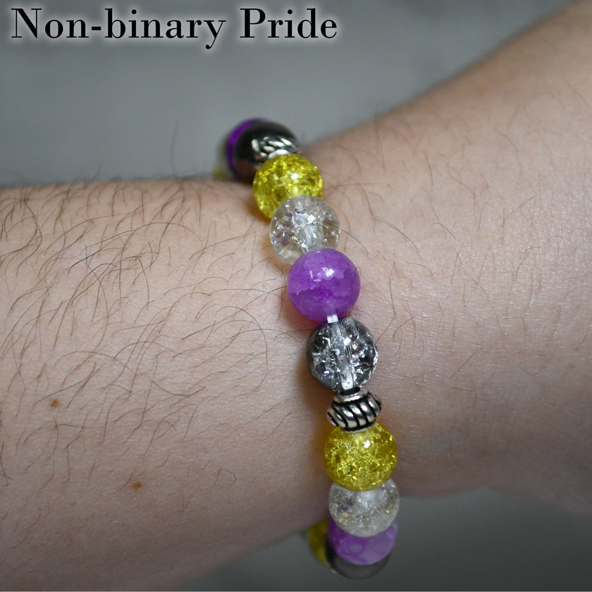 Discover our Nonbinary Pride Bracelet, designed with yellow, white, purple, and black glass beads, echoing the colors of the Non-binary Pride flag. This bracelet represents the diverse identities within the Non-binary community. Wear it proudly as a personal symbol or allyship, honoring and embracing the spectrum of gender identities with pride and respect.